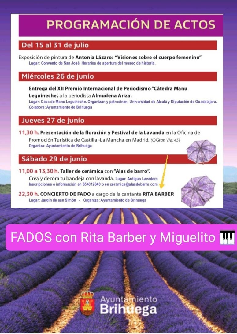 “El sábado, la protagonista indiscutible fue Rita Barber con ‘Más que Fado’, que cautivó al público con la fuerza de su voz y la calidez que desprende su forma de entender la música, porque esta artista canta emoción y cuenta historias con la música, abriendo nuevas vías de expresión y exploración musical. Acompañada por Raúl Sánchez a la guitarra portuguesa y violín, y Carlos Ramos con viola de Fado y guitarras, Rita Barber emocionó al público y lo sumergió en un viaje musical por las riberas atlánticas y mediterráneas” LA TRIBUNA (Ciudad Real).